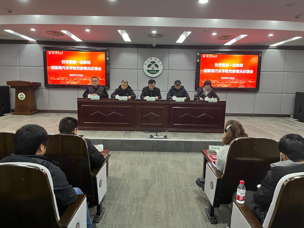 校党委委员、宣传部部长、巡察组组长倪建均代表巡察组作巡察情况反馈。他指出,农学院党委坚持以习近平新时代中国特色社会主义思想为指导,切实履行从严治党主体责任,在党建思政、人才培养、教育教学等方面取得明显进步。但也存在一些不足,比如:学懂弄通做实习近平新时代中国特色社会主义思想还不够到位;学院攻坚克难推动事业发展有差距;党员干部政治理论学习有待加强;落实意识形态工作责任制有待强化;推进“三全育人”工作有待提升;全面从严治党工作压力传导存在递减现象;廉政风险防范意识有待加强;“清廉学院”试点建设推进缓慢;学院制度监督执行力度有所欠缺;学院议事决策机制有待完善;基层党组织建设存在薄弱环节;领导班子建设有待增强;基层治理实效有待进一步提升;对学校巡视整改中的共性问题缺少整体研究。他表示,农学院要切实加强党的领导,进一步发挥好党委政治核心作用;推进全面从严治党,进一步抓好党风廉政建设;推进班子和干部队伍建设,进一步提升基层治理能力;狠抓整改落实,进一步提升整改工作成效。