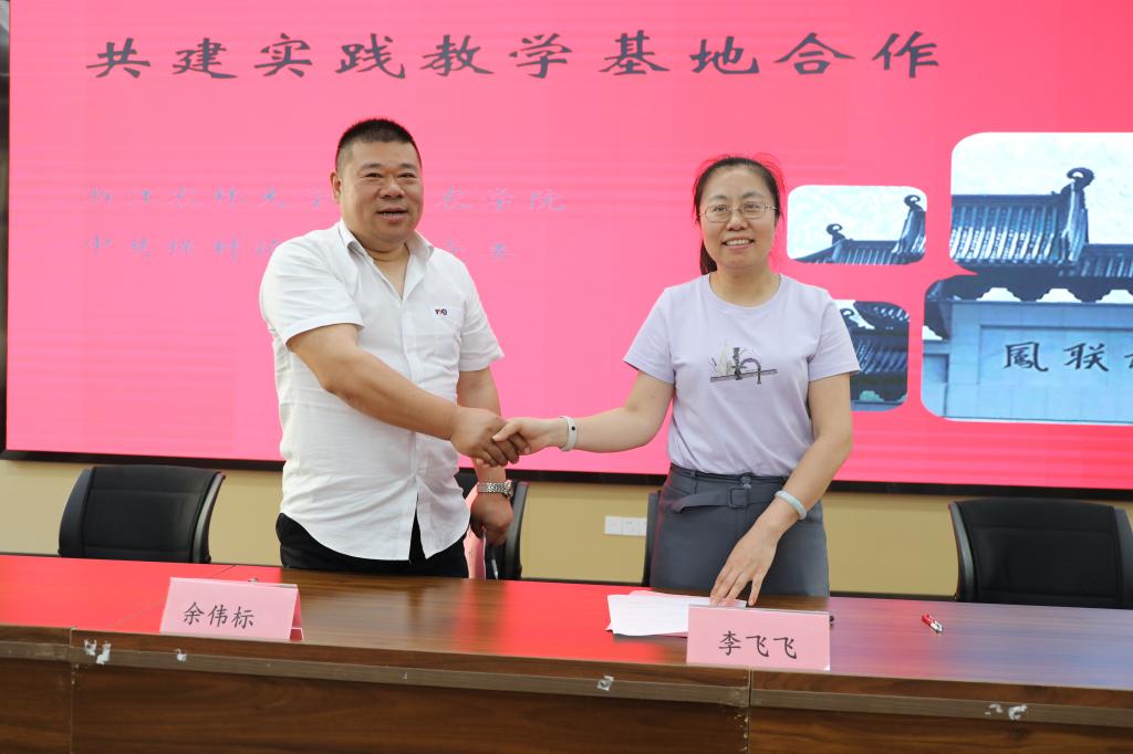 在凤联村文化礼堂,李飞飞、余伟标分别代表学院与凤联村党委共同签订合作协议,共建实践教学基地,为今后双方围绕人才培养、科技服务、社会合作等方面深入开展合作奠定基础。此外,毛晓红为同学们作《乡村产业及美丽乡村》讲座报告,横村镇农办副主任吴钫杰、校友吴钫杰分享了《我们在基层那些年》。