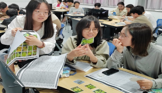 本次课程中,万敏博士首先向大家介绍了CABI的性质和历史等方面的情况。随后,她与任课教师饶琼、吴鉴艳一同授课,内容涵盖植物所需元素、植物缺素时的症状、缺素症状与其他病毒侵染症状的区别等主题。在讲授过程中,万老师结合自己工作中遇到的问题讲解相关知识点并分享经验,强调植物不健康因素的诊断应结合田间实际情况,以确保准确性。三位教师带领学生们开展了植物缺素诊断的小游戏,回顾了课堂内容。最后,万老师还对学生们的掌握情况进行了点评,帮助他们更好地掌握知识点。