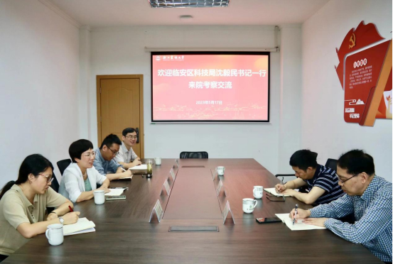 5月17日,临安区科技局党组书记沈毅民、调研员黄文豪、办公室主任吴亚舟一行来学院交流对接。学院党委书记梁卫玲及相关负责人参加了交流。