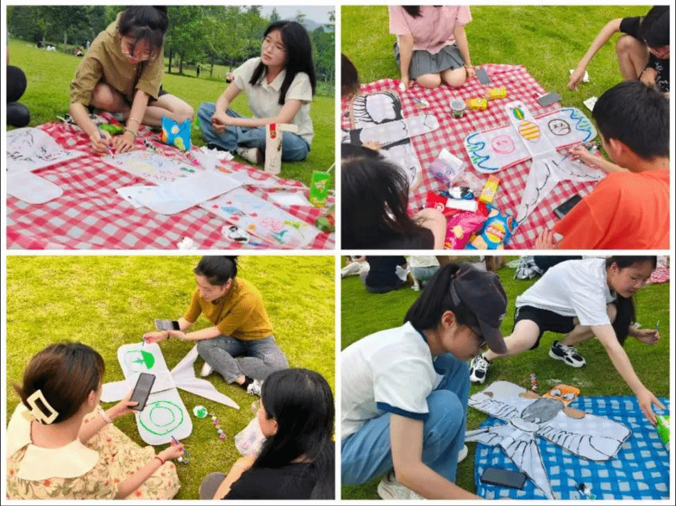 活动以“团结奋进促提升”为主题,组建4个团队,围绕特色风筝DIY、三人两足接力跑、奇思妙想“逛三园”等形式展开趣味竞技。中心成员们分成四个小队,在风筝DIY环节,各支队伍将风筝组装并对风筝进行绘制。两人三足接力比赛中,每一队都有自己独特的前进方式,在奋力冲刺中,成员的感情和默契逐步建立。“逛三园”活动考验的是同学们的思考能力和反应能力,在趣味中竞技,在竞技中锻炼和提高表达能力。