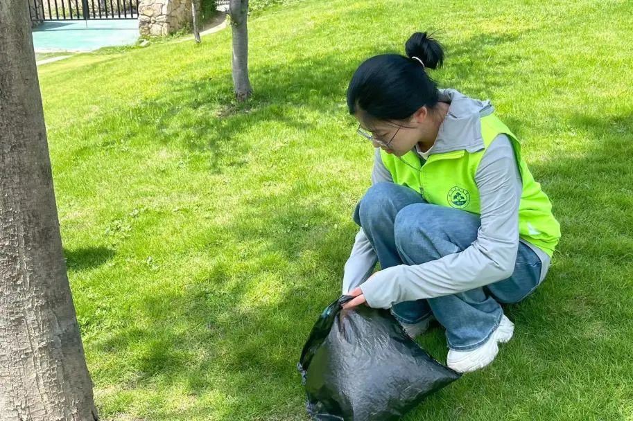 志愿者们以小组为单位,积极认真进行拔除杂草和捡树枝等任务。尽管天气炎热,每位志愿者还是认真仔细地对待自己的任务,不放过任何一处,全方位检查绿地环境,清理每一处杂草和落叶。