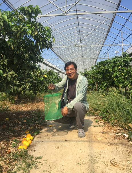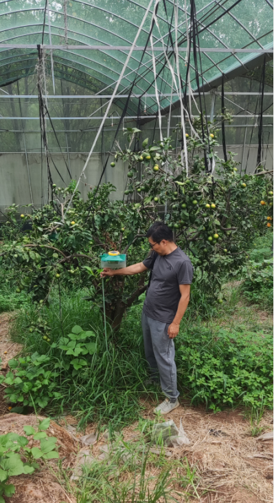邓建宇深入践行习近平总书记生态文明思想,致力于以教学、科研和服务促生态育人,助力乡村振兴。2017年担任省科技特派员以来,积极参与“百博进百企”科技服务,围绕生态绿色发展,解决乡村振兴过程中农药面源污染、病虫害等重大问题,开发与推广生态调控技术替代传统化学农药,减少化学农药40%以上,促进农民致富增收30%以上。在科技下乡过程中发现浙江省丘陵山区果园受吸果夜蛾为害非常严重,部分果园减产达2/3甚至绝收,造成严重经济损失,是水果产业重点防控害虫之一。目前生产上缺乏安全、经济、有效的防控技术。邓建宇带领学生开始吸果夜蛾发生规律及防治试验研究工作。由于吸果夜蛾吸成虫白天通常潜伏在山地的杂草、灌木,傍晚开始陆续飞入果园,晚上9-10点达到危害高峰,凌晨4点左右飞回潜伏场所,研究吸果夜蛾常常需要在晚上进行试验。经过多年试验研究,掌握了吸果夜蛾的发生规律并开发出吸果夜蛾高效诱捕技术及驱避技术,制定了吸果夜蛾防治解决方案。通过每年30余次培训讲座在浙江省内进行吸果夜蛾防控技术推广,帮助果农挽回产量损失30%以上,同时避免了水果接近成熟或成熟期化学农药的使用,保证果品品质。