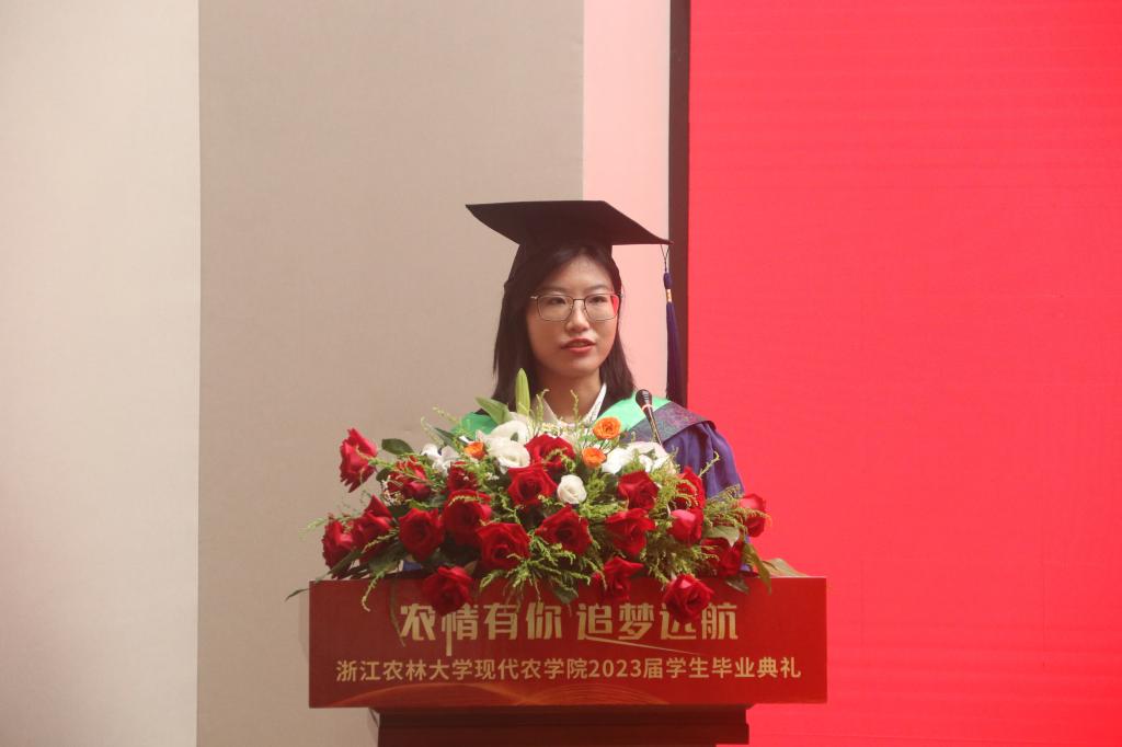 毕业生代表、农学研203班吴蓉,在校生代表、植保202班李军铭,教师代表、作物学科丁明全分别作了发言。