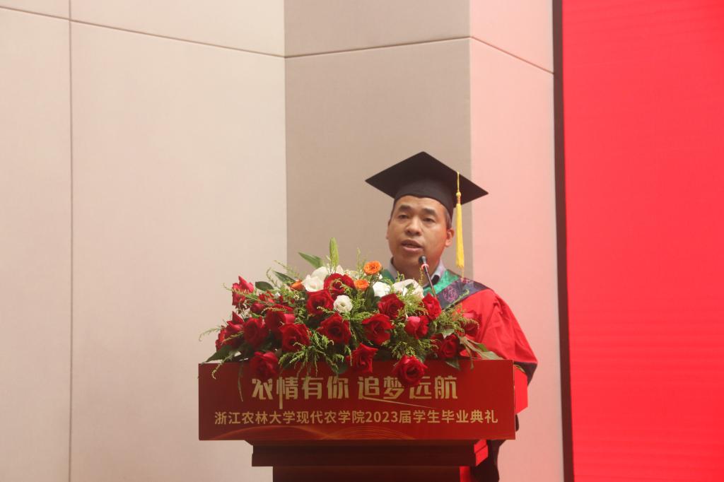 曾大力在致辞中祝贺2023届全体毕业生顺利完成学业,与同学们一起回忆了学校、学院近年来的跨越式发展历程和卓越成就,并对全体毕业生提出三点希望:要胸怀“国之大者”,勇担复兴大任;要践行“三干”品质,保持优良作风;要厚植“三农”情怀,练就兴农本领,以强农兴农为己任,在乡村振兴的大舞台上建功立业,为加快推进农业农村现代化、全面建设社会主义现代化国家贡献青春力量。