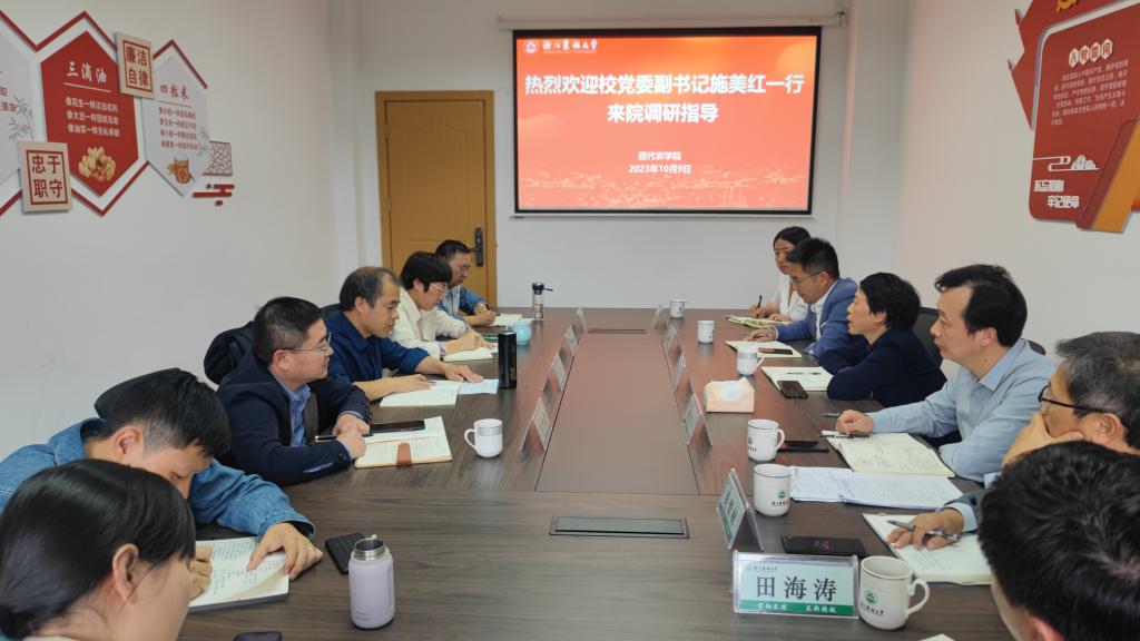 施美红对农学院各项工作取得的成绩予以充分肯定,并希望学院要坚决贯彻落实立德树人根本任务,坚持“为党育人、为国育才”,进一步关心关爱学生成长;要持续加强和改进师德师风建设和学风建设,增强教育教学合力,优化育人育才环境;要充分运用好“浙里成长”等智慧思政平台,推进思想政治教育工作的整体智治,实现数字赋能思想政治工作。