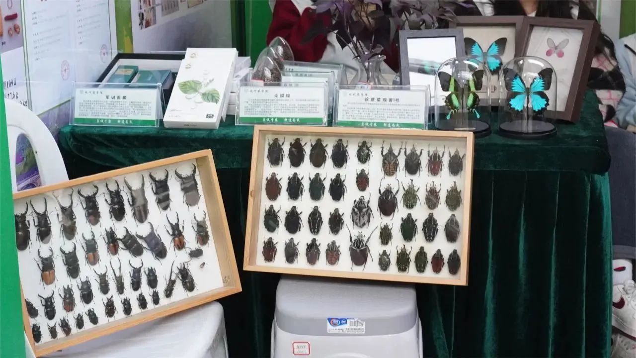 我院中国工程院喻树迅院士团队培育的“中棉619”“浙农林1号”“浙农林3号”等棉花新品种,曾大力教授团队创制的多类型功能性稻米种质,赵光武教授团队培育的“农林玉1号” 和“惠禾6号”,郑志富教授团队创新培育的高油酸花生,陆国权教授团队培育的观赏型和菜用型甘薯,邓建宇教授团队自主研发的PLT-B信息素光源诱捕器等,还有学院老师参与研发的防晒面膜、昆虫标本和植保学科精心准备的食用昆虫,制作出的米酒、寿司、薯片等,吸引了众多师生驻足观赏、争相品鉴。