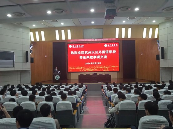 3月29日上午,2024届杭州天目外国语学校全体高三师生来我校参观交流。学院党委副书记宋春春,学生办辅导员和在校生代表参加活动。