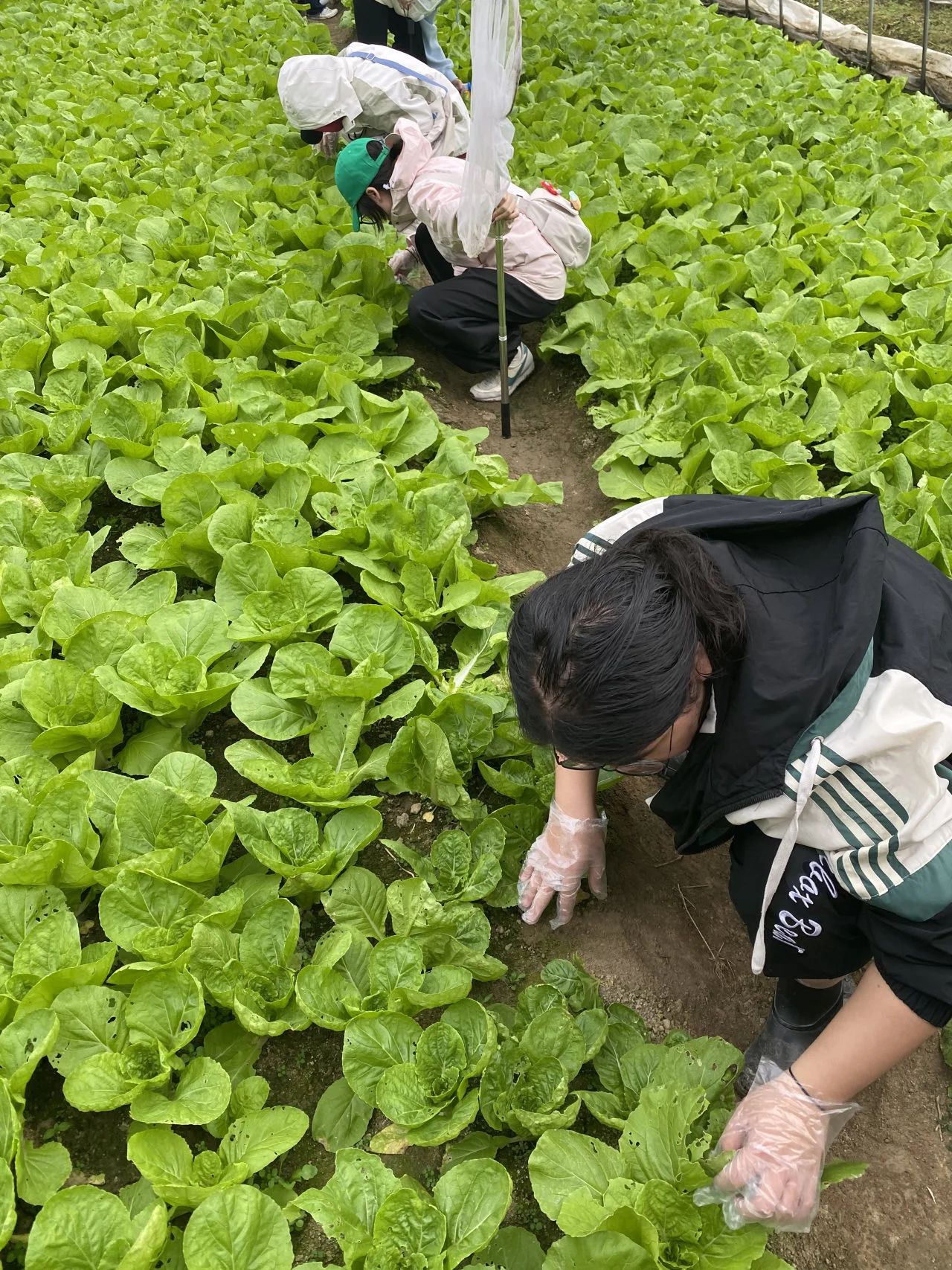 在饶琼老师与谢永坚老师的指导下,同学们深入田间地头,近距离观察蔬菜作物的生长状态,学习识别各种病虫害的特征与发生规律,动手采集病害与作物害虫。同时,在学习生物防治、物理隔离等绿色防控技术的实际应用相关讲解后,同学们更加深刻地了解了“预防为主,综合防治”的植保理念。