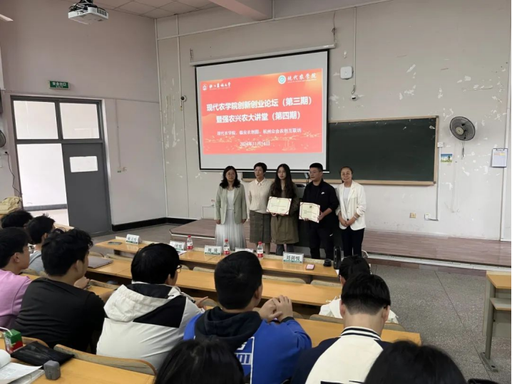 为了助力本科生了解并积极参与创新创业活动,深入探究现代农业发展的新趋势,11月14日下午,学院在教2-311举办主题为“让创业与时代同行,让创新携梦想齐飞”的第三期创新创业论坛暨第四期强农兴农大讲堂。活动邀请了义乌市雅荷农业开发有限公司总经理骆遥、太阳集团城娱8722食健学院教师周琦、tyc8722太阳集团研究生会主席唐欣悦给学生们做创新创业分享。农学院党委书记梁卫玲,植物保护教师刘训悦出席了本次论坛,会议由农学专业负责人李飞飞主持,农学、植物保护和智慧农业的大二学生参加了此次讲座。