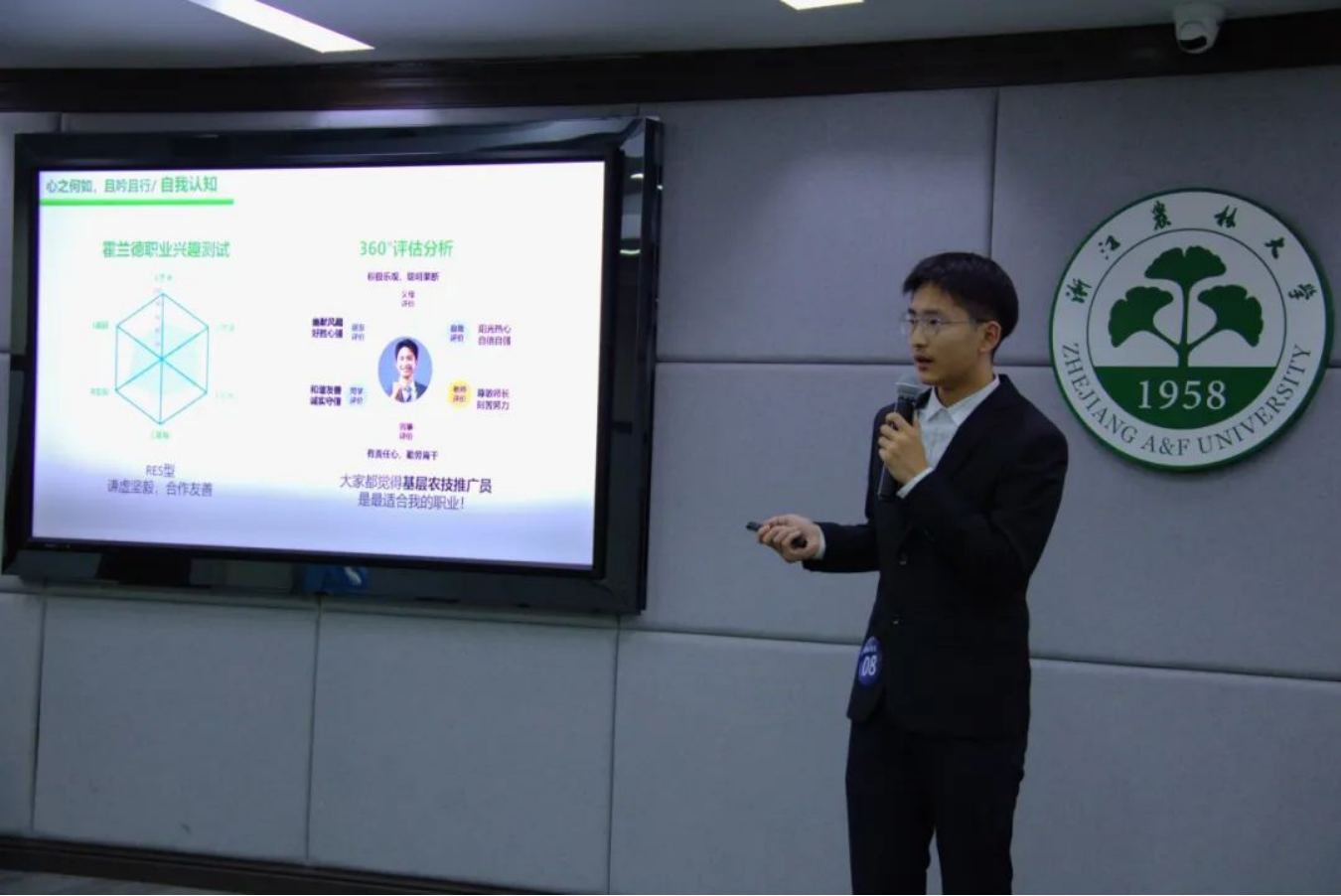 本次大赛自9月启动以来,经过初赛、复赛环节,最终有成长赛道与就业赛道共21位同学晋级决赛。决赛分为选手主题陈述和评委提问两个环节。成长赛道的核心在于深入评估学生职业发展规划的合理性及其围绕职业目标所展开的成长轨迹。就业赛道则侧重于检验学生的求职实战技巧,以及他们个人发展路径与社会经济发展需求的契合程度。