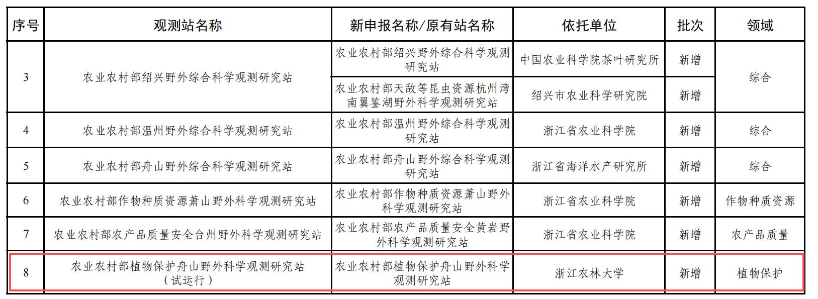 近日,农业农村部科学技术司发布《关于加强农业农村部野外科学观测研究站建设与管理的通知》(农科(条件)[2025]4号),公布了新的部级野外观测站体系名单,学院成功获批农业农村部植物保护舟山野外科学观测研究站,成为浙江省内承担农业基础性长期性科技工作的重要力量。